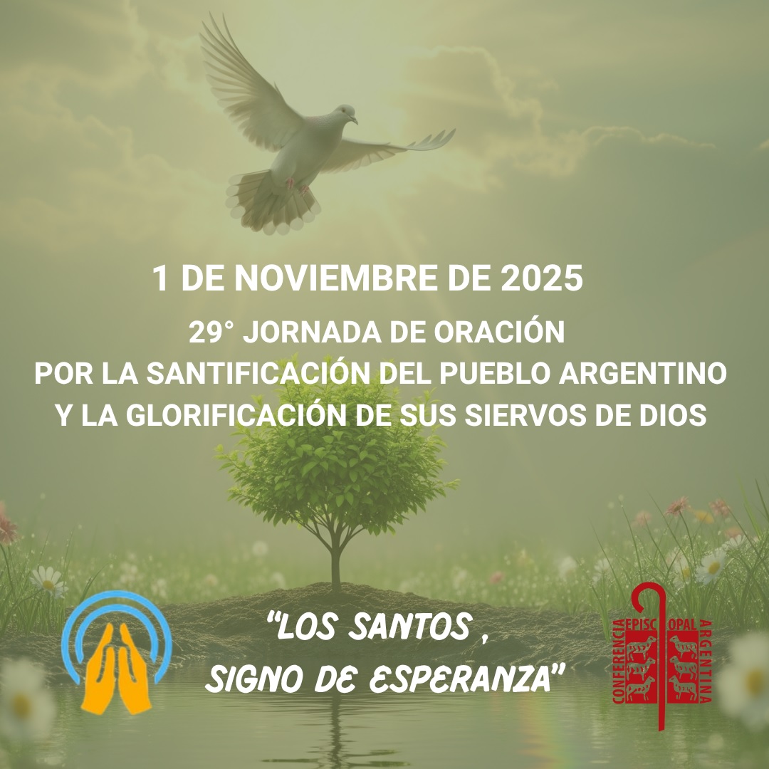 La Delegación para las Causas de los Santos de la Conferencia Episcopal Argentina preparó unos subsidios para celebrar nuestra 29º Jornada de Oración por la Santificación del Pueblo Argentino y Glorificación de sus Siervos de Dios, del próximo sábado 1º de noviembre.