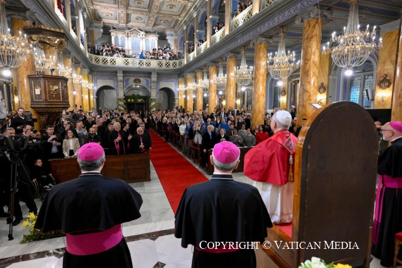 De este modo, en la mañana del viernes 28 de noviembre el Santo Padre presidió un Encuentro de Oración con obispos, sacerdotes, diáconos, personas consagradas y agentes pastorales en la Catedral del Espíritu Santo, en la ciudad de Estambul.
