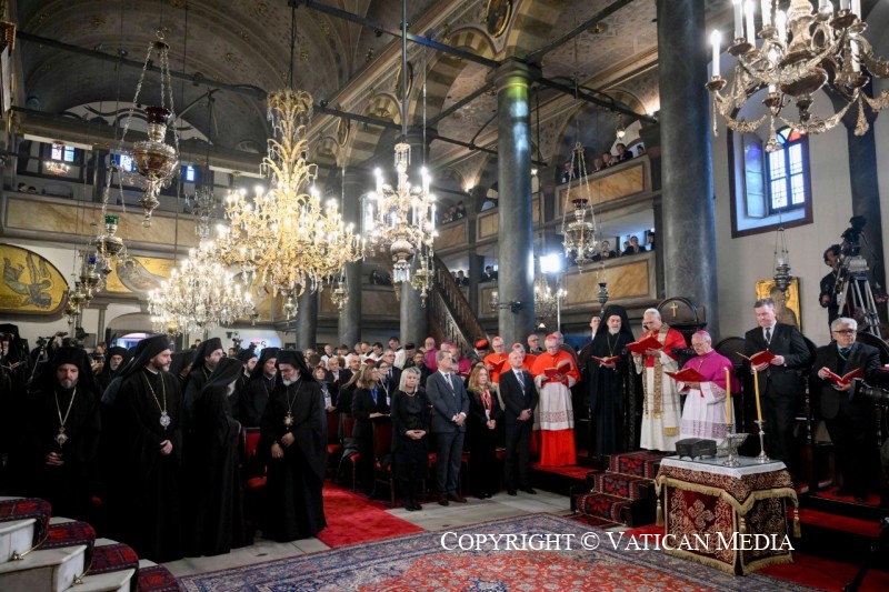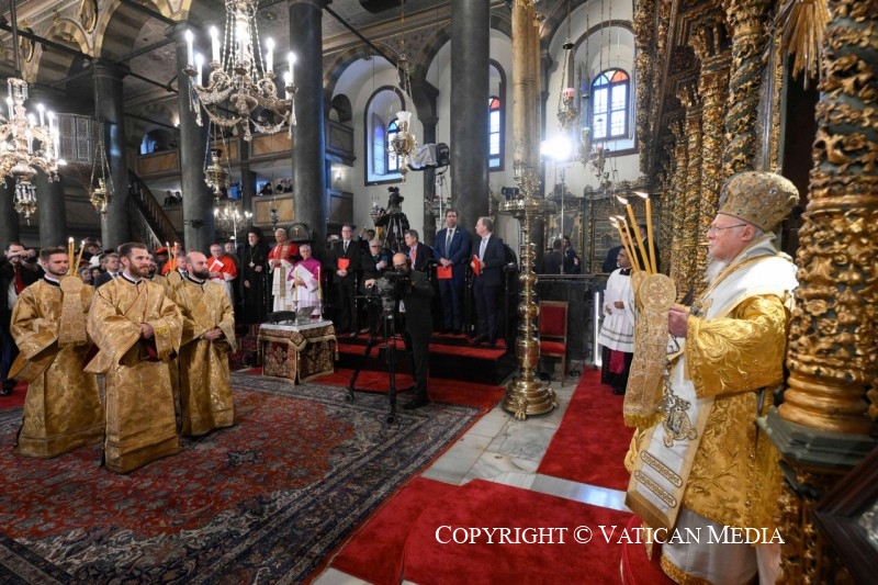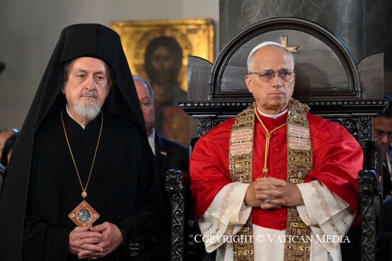 Continuando con la agenda prevista en relación al Viaje Apostólico del Santo Padre León XIV a Turquía y el Líbano con una peregrinación a Iznik (Turquía) con motivo del 1700 aniversario del primer concilio ecuménico de Nicea (27 de noviembre - 2 de diciembre de 2025 ), compartimos el discurso del Papa al finalizar la Divina Liturgia en la Iglesia Patriarcal de San Jorge, en la ciudad de Estambul, este domingo, 30 de noviembre de 2025, primero del Tiempo de Adviento.