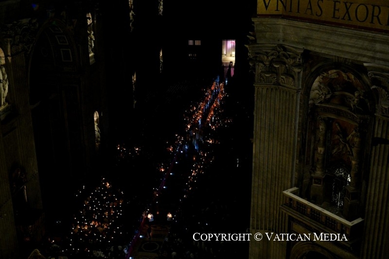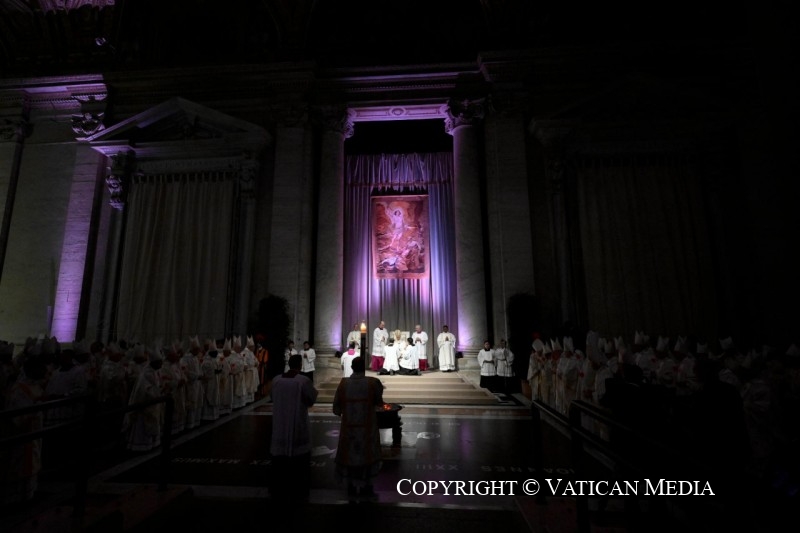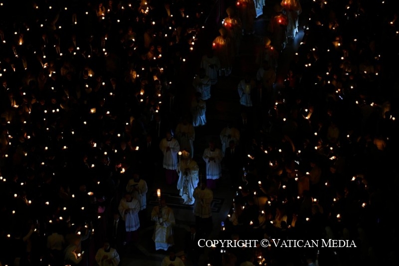 La Eucaristía comenzó a las 21.00 hora romana en el atrio del templocon la tradicional bendición del fuego y la preparación del cirio pascual. A continuación compartimos el texto de la Homilía pronunciada por el Papa y la transmisión de la Santa Misa.