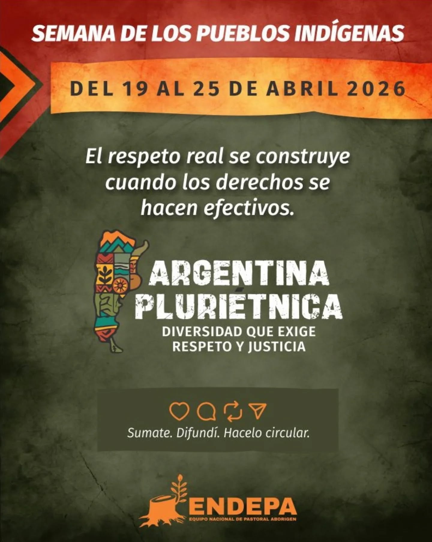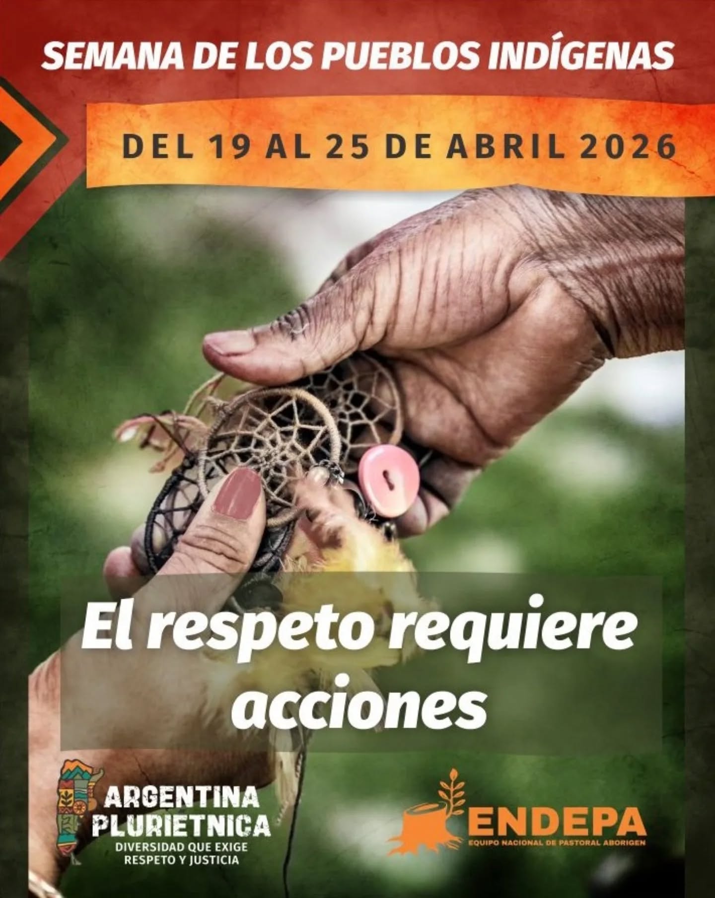 El Equipo Nacional de Pastoral Aborigen (ENDEPA) convocó a participar de las actividades de la Semana de los Pueblos Indígenas, prevista del 19 al 25 de abril, con el lema "Argentina Pluriétnica, diversidad que exige respeto y justicia".